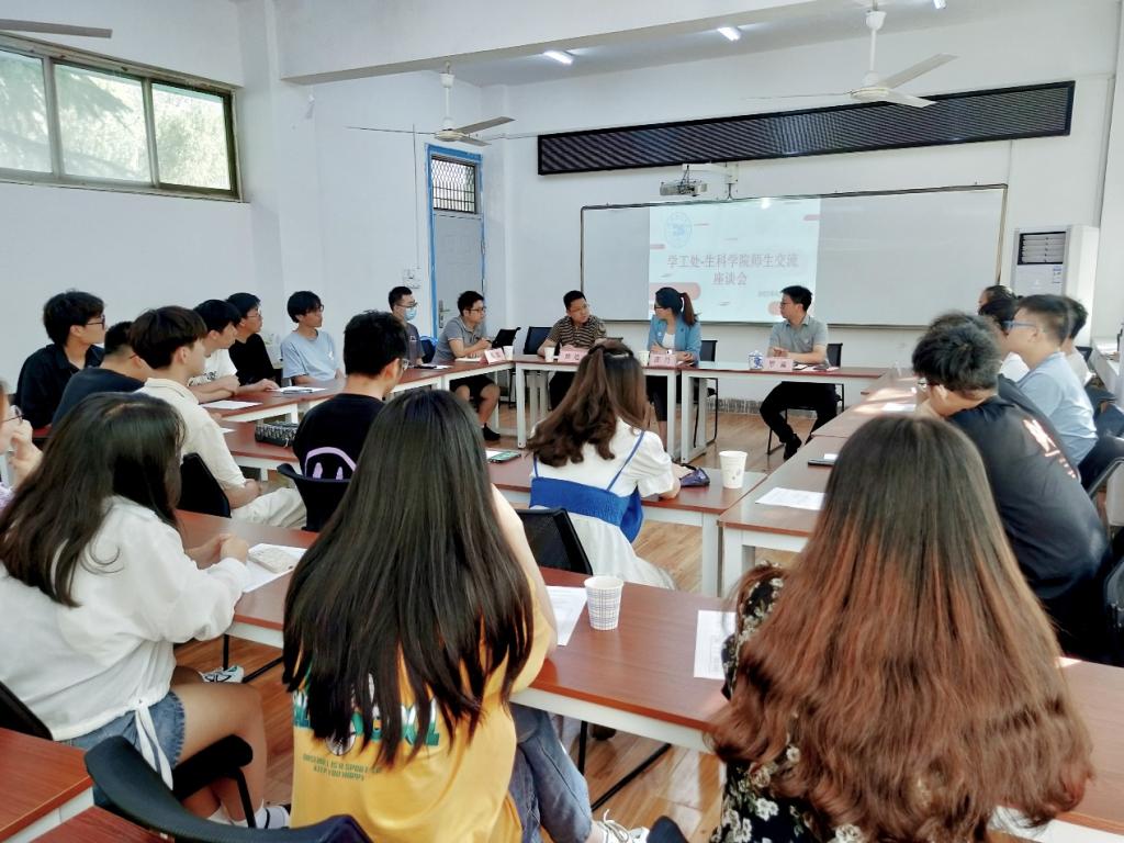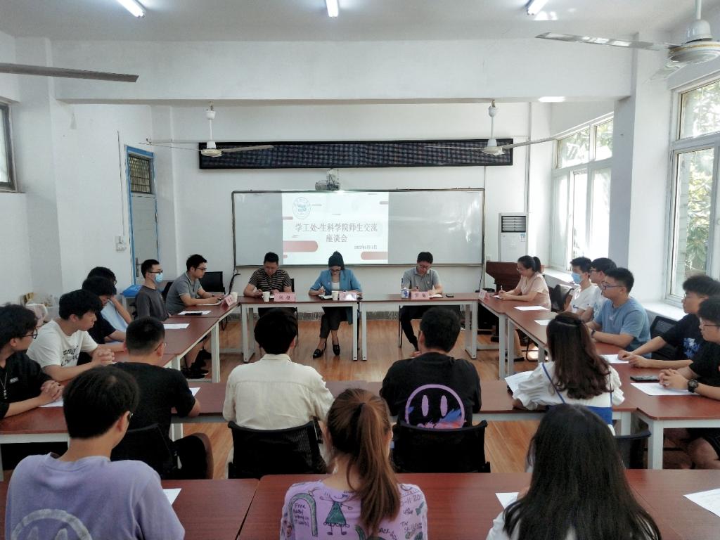 为认真贯彻落实党员干部“下基层、察民情、解民忧、暖民心”实践活动部署要求,进一步了解实际教学状况,开展好学生教育管理工作。6月15日,学工处处长陈丹深入生科学院了解学院学生情况,倾听师生心声。生科学院党委副书记罗霄、学工处姚旭老师、制药2103班班主任熊超老师、生科学院辅导员张婷老师以及生科学院制药2103班的全体同学参加了此次座谈会。本次座谈会由罗书记主持。
