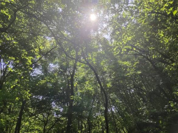 今天是最后一天游览的时光,我们走了比前两天更长的路。一开始我们沿着第一天来时的路出发,来的时候坐的观光车,而现在是徒步;来的时候乌云密布,飘着小雨,现在则是风和日丽,万里无云。所以,虽然是同一条道路,再经历一次,也是不一样的感觉。就好似有些植物,我们前两天见过,不是那么熟悉,今天再见时就感觉是“老朋友”了,有的甚至可以第一时间叫出名字来。这对于之前看什么都觉得是杂草的我来说,算是一个很大的进步了。在路旁,我们看到了红花檵木,它是一种很常见的观赏植物,由于其叶子的独特颜色,因此它在一众绿叶植物中显得尤为明显。待其开花时,紫红色花朵与暗红色的叶子相映衬,好似一片红海。返程时,我们走的栈道,在栈道旁发现了一种奇特的植物名为天钉。它是生长在皂角树上的棘刺,硬度很大,具有消肿托毒、排脓、杀虫等一些作用。在古书《本草汇言》中有这样一段话:“皂荚刺,拔毒祛风。凡痈疽未成者,能引之以消散,将破者,能引之以出头,已溃者能引之以行脓。于疡毒药中为第一要剂。又泄血中风热风毒,故厉风药中亦推此药为开导前锋也。”