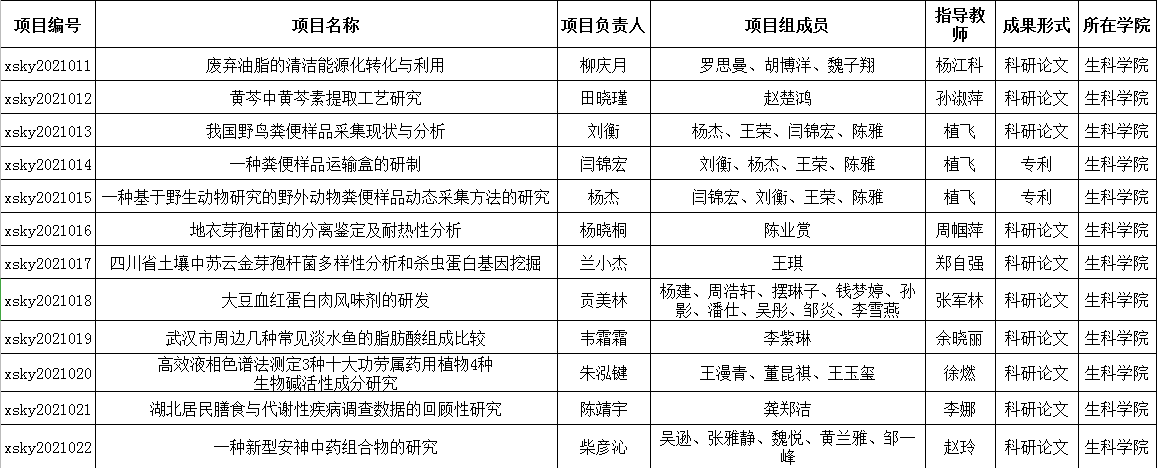 生科学院2022年校级“大学生创新创业训练计划项目”立项名单
