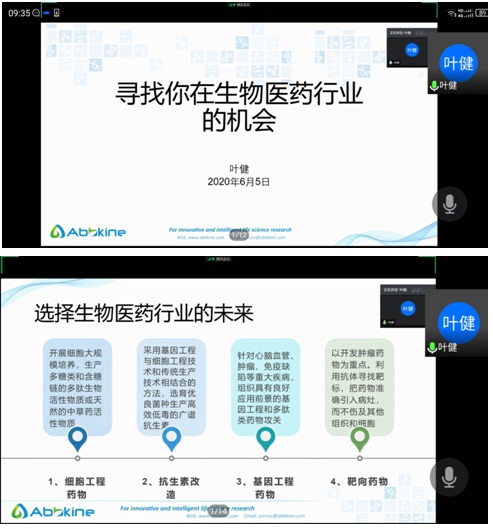2020年6月5日9点半,亚科因生物技术(武汉)有限公司、艾美捷科技有限公司及安赛思生物医药技术有限公司联合创始人叶健先生来到《生物制药设备与分离纯化》创新课堂,借助腾讯会议平台与2017级生物制药专业的同学们分享了他的工作和创业经历。