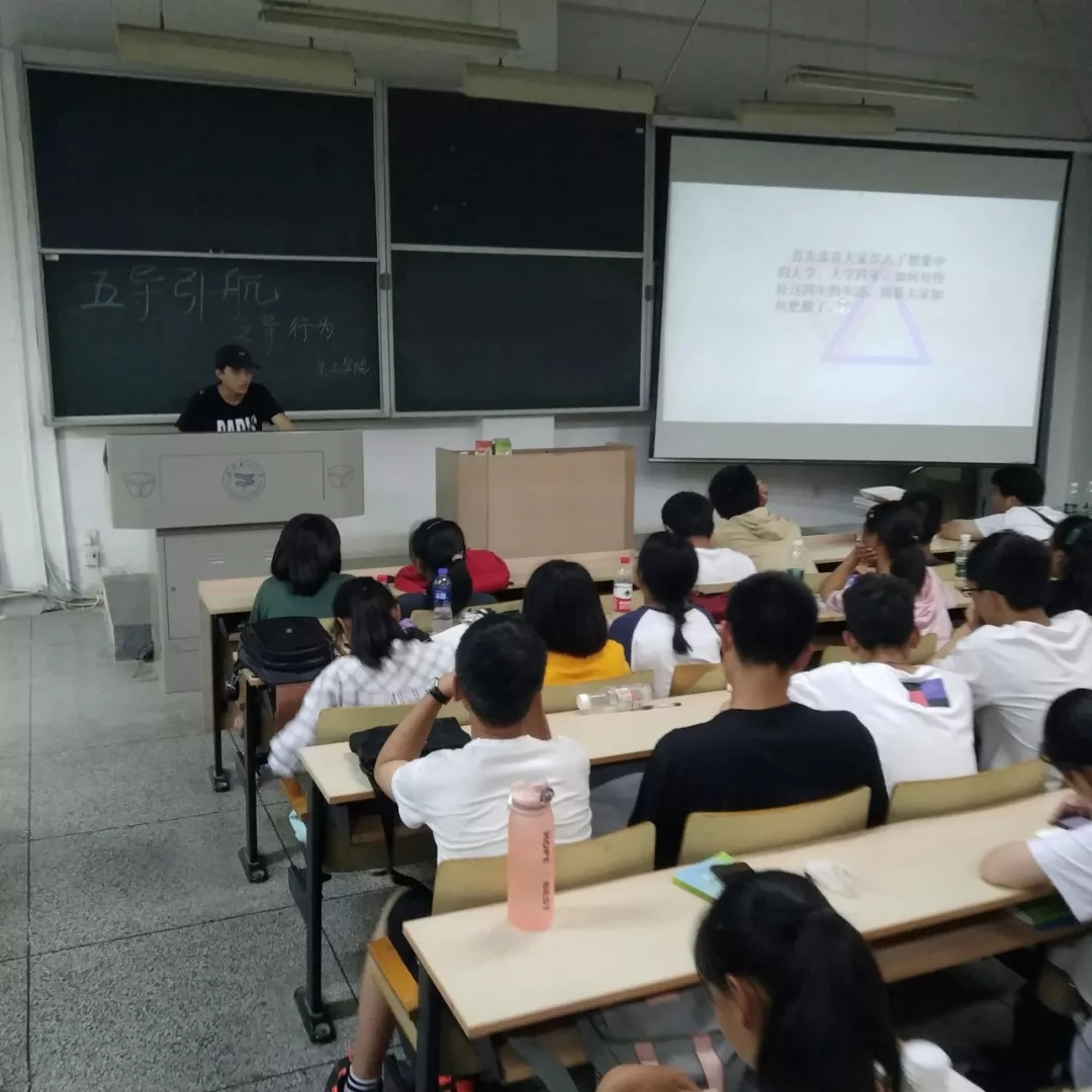 为了让新生们更快地适应大学生活,树立远大理想,在实践中不断充实与提升自我,过好人生中的黄金四年,2019年9月16日,新葡的京于常青校区2号楼开展"五导引航"新生入学引导活动,本次活动在多个教室同时进行,2019级新生导学员从"导理想"、"导学习"、"导生活"、"导行为"、"导心理"五个方面为新生带去宝贵的指导建议。