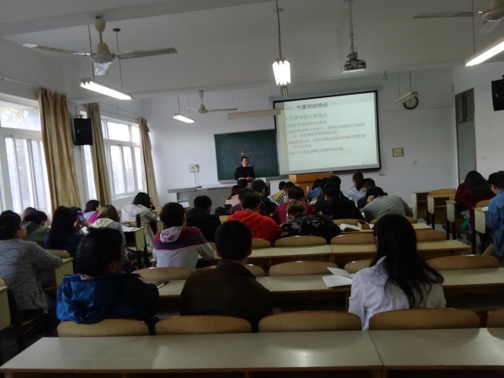 2018年11月2日,制药工程系组织各位老师在3号教学楼204室进行了一次本科教学观摩活动。各位老师认真聆听了植飞老师主讲的《药剂学》双语课程,课堂内容重点讲解了气雾剂,包括气雾剂的分类,不同气雾剂的优缺点,气雾剂的特殊装置等。老师和同学从中了解到药物剂型对吸收的影响。课后,各位也对课堂上课的仪表仪态、内容的科学性、多媒体制作等方面进行了探讨,植飞老师课程内容的紧密性、多媒体的生动性让大家印象深刻,亦就与学生的互动、板书等内容与植飞老师进行了探讨,大家都从相互交流获取了经验,为以后提升教学水平奠定更好的基础。