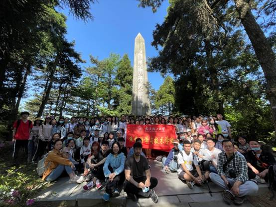 5月9 日的实习中,学生经由好汉坡一线下行,实地调研庐山植被垂直梯度分布情况。途经庐山抗战纪念碑,锦绣杜鹃在侧,在讲解植被分布特征后,师生就地开展课程思政教育。1937年6至7月,周恩来率中共代表团两次上庐山与蒋介石进行第二次国共合作谈判。当年7月17日,蒋介石在此发表了“抗战宣言”, 吹响了全民族抗战号角。在刻有“捍国护民、浩气长存”的石碑下,实习队伍曾万勇老师为生科学子介绍了庐山在中国人民抗日战争中的重要地位,带领同学们瞻仰先人精神,继承烈士遗志,鼓励大家争做中华脊梁。