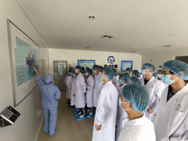 在质保部技术人员的带领下,学生们在质量控制区实地参观学习,对生物药物制造企业的原料制备、冷藏、产品分离纯化、分析检验、质量控制、包装等各环节有了直观认识。实习过程中,学生对生物药物企业的发展现状、生产经营情况、相关岗位要求有了更深入的了解,并受到人力资源部的热情招聘邀请。