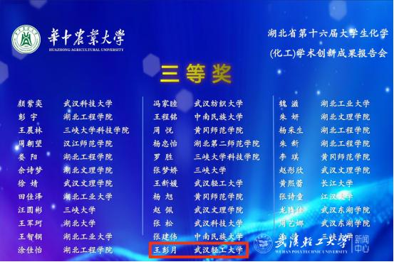 由湖北省化学化工学会主办、华中农业大学承办的湖北省第十六届大学生化学(化工)学术创新成果报告会于2023年5月13日至5月14日在华中农业大学举行。我校生科学院学生郭昌华、王彭月分别荣获一等奖、三等奖。