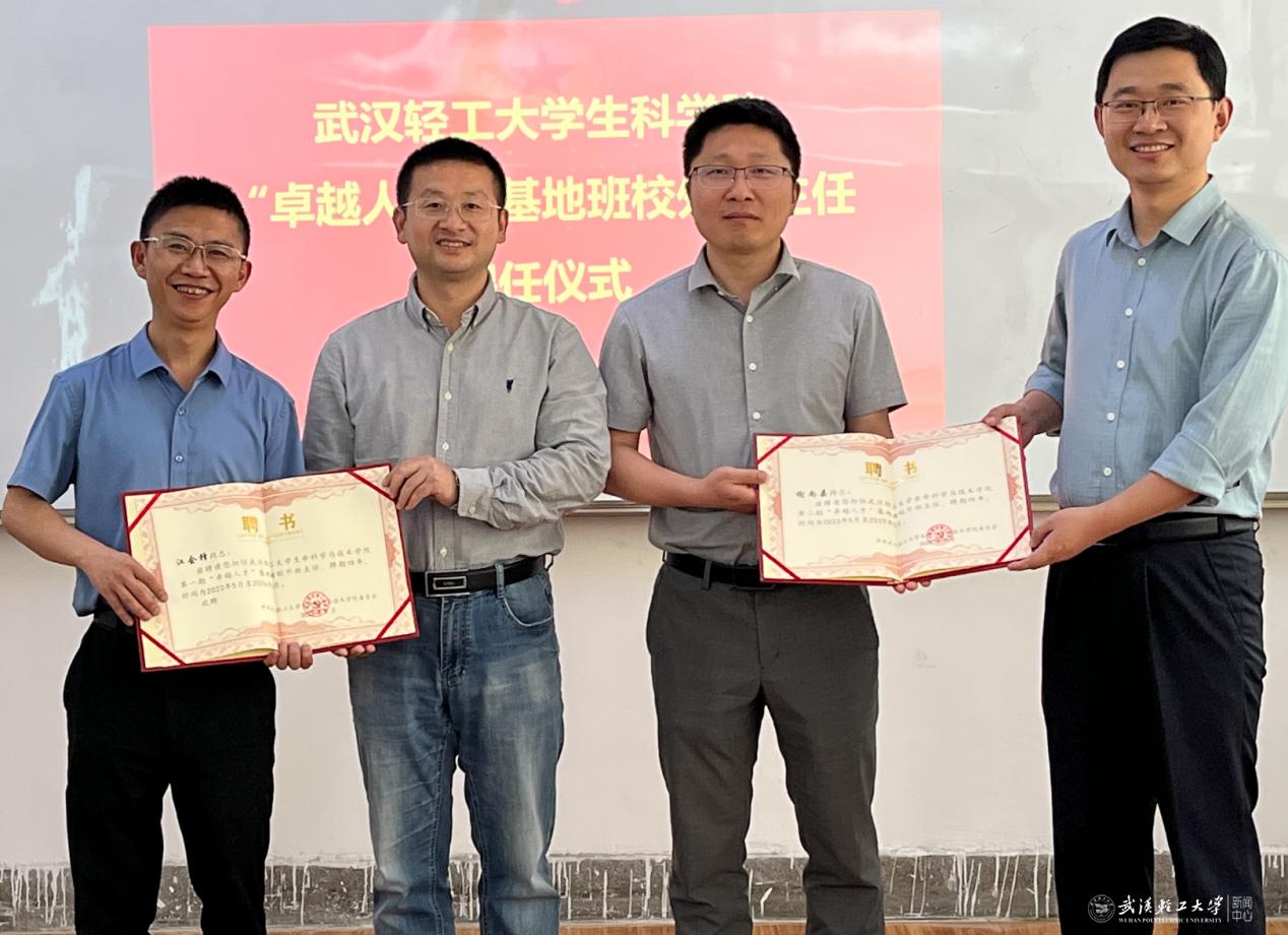 5月27日,生科学院邀请中科院天津工业生物技术研究所江会锋研究员和华中科技大学谢尚县教授来校座谈,并由院长陈新和党委书记易文君为两位教授颁发“卓越人才”基地班校外班主任聘书。