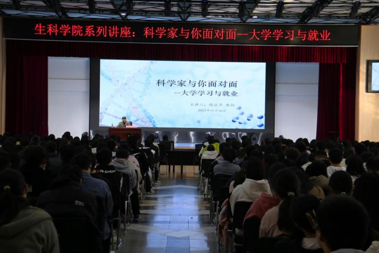 为进一步加强学生对所学专业的认知,深入了解学科特点和专业发展方向,激发同学们的学习热情。2023年11月16日下午,3003新葡的京集团邀请特聘教授陈应华为2023级同学作“大学学习与就业”专题辅导报告。生科学院党委书记易文君、院长助理吴菁、23级辅导员和班主任参加了此次讲座,讲座由生科学院党委副书记罗霄主持。