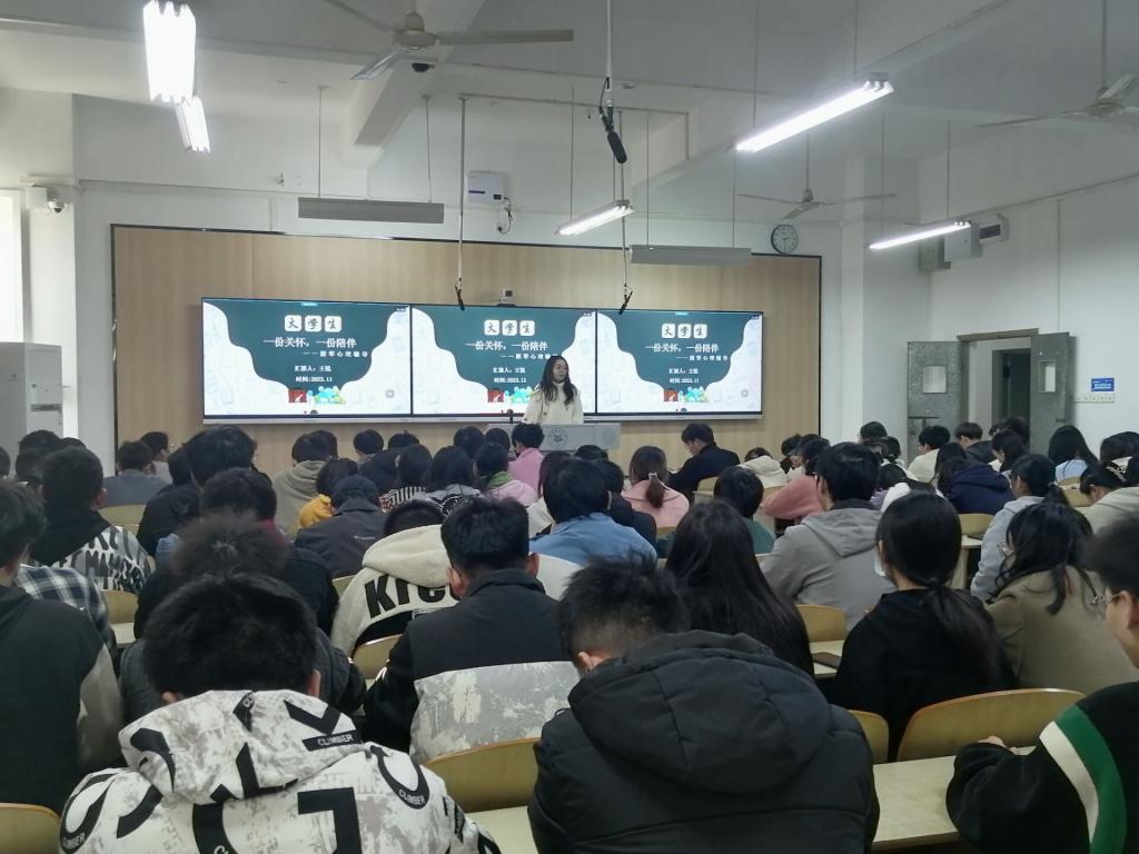 为进一步加强心理健康教育四级工作体系建设,将心理健康教育工作落实到班级或实验室,促进学生朋辈心理互助,2023年11月23日,3003新葡的京集团开展了“一份关怀,一份陪伴”为主题的心理专题培训。研究生辅导员王悦、学生会主席何傲天、本科各年级寝室长、心理委员等等200余人参加了此次活动。