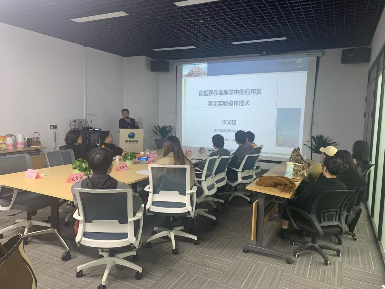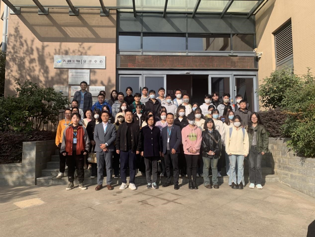 2023年11月24日下午,武汉轻工大学2023级药学专业硕士研究生32人在《应用药理学》课程主讲教师徐凌云教授和余泽军讲师的带领下,驱车来到位于武汉光谷生物园的湖北天勤生物科技有限公司GLP中心(即湖北天勤生物科技有限公司武汉分公司)进行参观学习。全体师生在GLP中心田义超主任、许旭部长、周文副主任的带领下参观了中心实验大楼,了解了药物临床前安全性评价的流程和主要实验内容。随后田义超主任为师生们做了《食蟹猴在毒理学中的应用及常见实验操作技术》的讲座。田主任向同学们介绍了公司的发展历程,主要讲解了食蟹猴在药物安全性评价尤其是新冠疫苗的毒理学评价中的应用,并为同学们解答疑问,激发了同学们的学习热情。