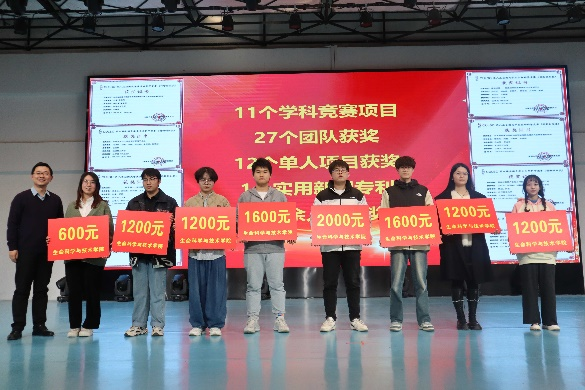 曾万勇宣读了《关于颁发2023年生科学院学生科技成果奖励的决定》,易文君为获奖同学代表颁发了奖励。