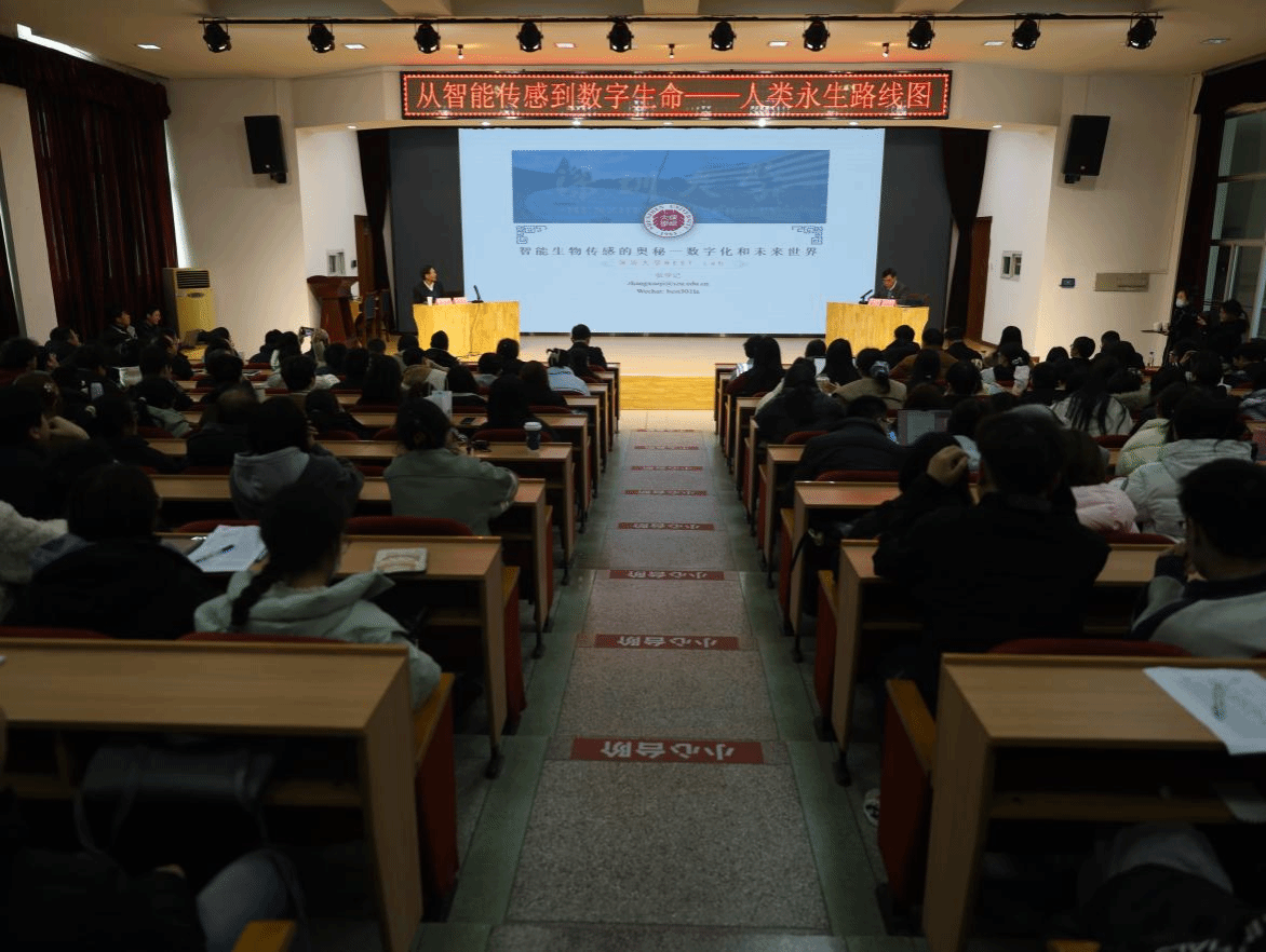 2025年3月7日下午,深圳大学讲席教授、校务委员会副主任张学记教授受邀在学校常青校区科学报告厅作题为《从智能传感到数字生命——人类永生路线图》的学术报告,吸引了3003新葡的京集团全体青年教师、研究生、本科基地班师生,以及食品学院、化环学院等300余名师生参加。报告会由校长董仕节教授主持。