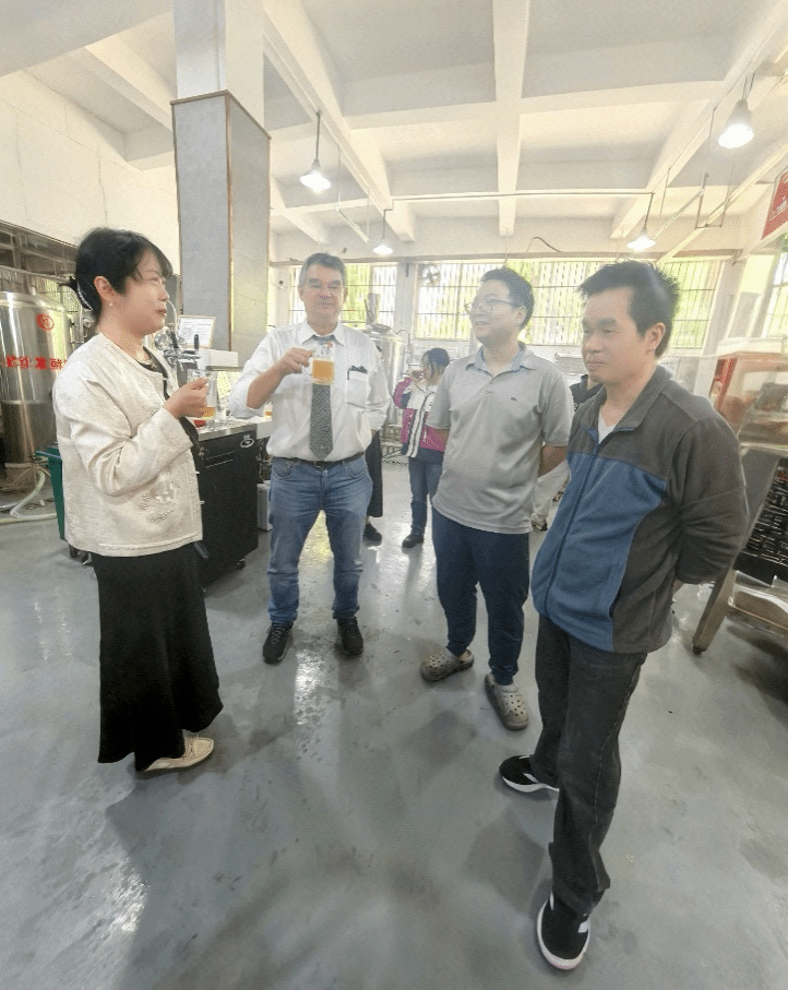 报告会后,Bisping教授还参观了学院的创新创业基地(啤酒屋),了解了基地的教学运行、风味控制实践等情况,对学院的实践教学模式表示肯定,并分享了国际啤酒酿造领域的前沿技术与发展理念。