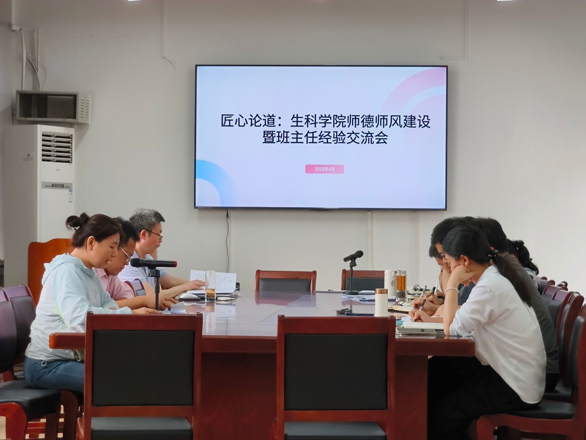 2025年9月11日下午,生科学院在609会议室召开师德师风建设暨班主任经验交流会。学院党委书记易文君、院长陈新、党委副书记罗霄、副院长曾万勇等出席会议,生科学院20余名班主任参与工作交流。会议由罗霄主持。