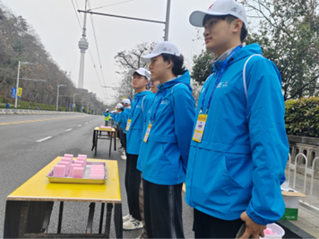 志愿者组长李玥佳表示:“在岗期间,我见到了来自其他国家的特邀嘉宾,也见到了中国的马拉松冠军选手,他们全力冲刺比赛的精神深深打动了我。这一次的志愿服务经历无疑是一次“双向奔赴”。参赛者接过我们手中递出的海绵和水杯,并面带微笑地说‘谢谢,你们辛苦了’,我回答不辛苦时,我们互敬了对方一个大拇指,当我们为他们摇旗呐喊声嘶力竭时,选手们会贴心地说‘留点力气别把嗓子喊哑了’。参赛者们在前面奋力奔跑,志愿者们在后方做好补给,共同描绘这美丽的马拉松赛事图。当我们整理好桌子后,这场“樱花季,越江湖”已经结束了,如今依旧能记得一句句‘谢谢’,也为选手的毅力而发自内心的敬佩。致敬所有参与赛事的选手,也致敬所有为赛事提供服务帮助的志愿者,裁判,各行各业的支持者。”