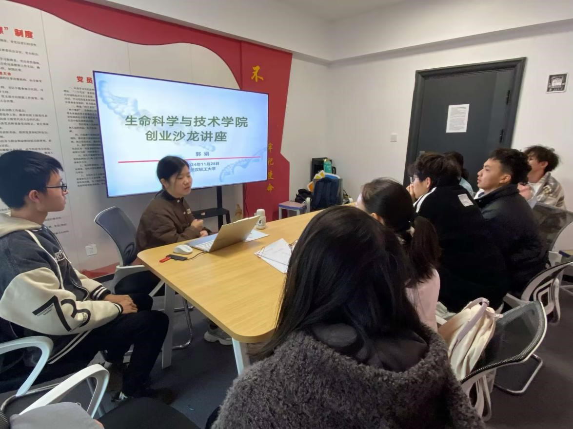 在讲座进行过程中,郭娟老师向同学们介绍了合成生物学,并对合成生物学的革新、科学创新与专业基础、科学创新与兴趣等方面的知识进行了讲解并且解释了创业想法与市场调研、商业模式、团队组建等创业的关键知识要点。期间,郭娟老师指出抓住并总结争论性很强的问题,多与他人交流,注重研究思路的创新,这些是创业道路上不可缺少的部分。在讲座的最后,给同学们在创业的道路上提供了十分有价值的建议。