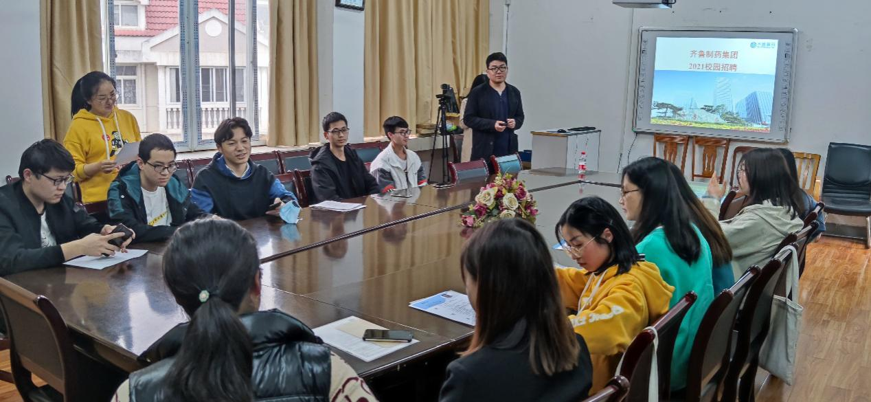 本次会议的宣讲员由齐鲁制药集团有限公司的HR担任,HR通过播放宣传视频让大家了解到齐鲁制药有限公司位于山东省济南市,前身为齐鲁制药厂,是中国大型综合性现代制药企业,专业从事治疗肿瘤、心脑血管、抗感染、精神系统、神经系统、眼科疾病的制剂及其原料药的研制、生产与销售。