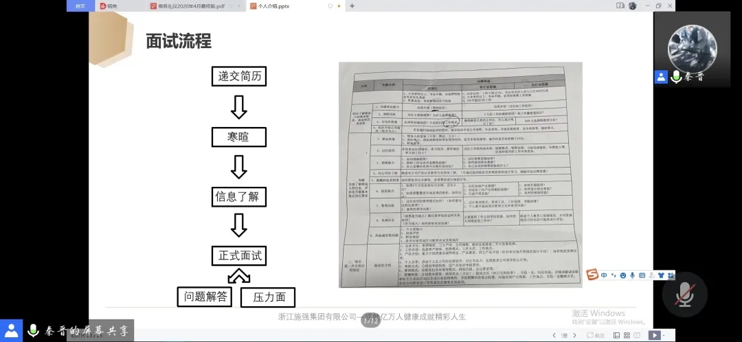秦晋分别从人岗匹配,简历书写,面试流程,个人工作经历分享四个方面介绍了就业时的注意事项,分别阐述了应该如何选出与自己的性格相匹配的岗位,在写简历时应当侧重的部分和简略的部分,面试官面试的大概流程以及在面试时最需要注意的压力面,并根据自己的工作经历向大家分享了一些自己的心得体会。