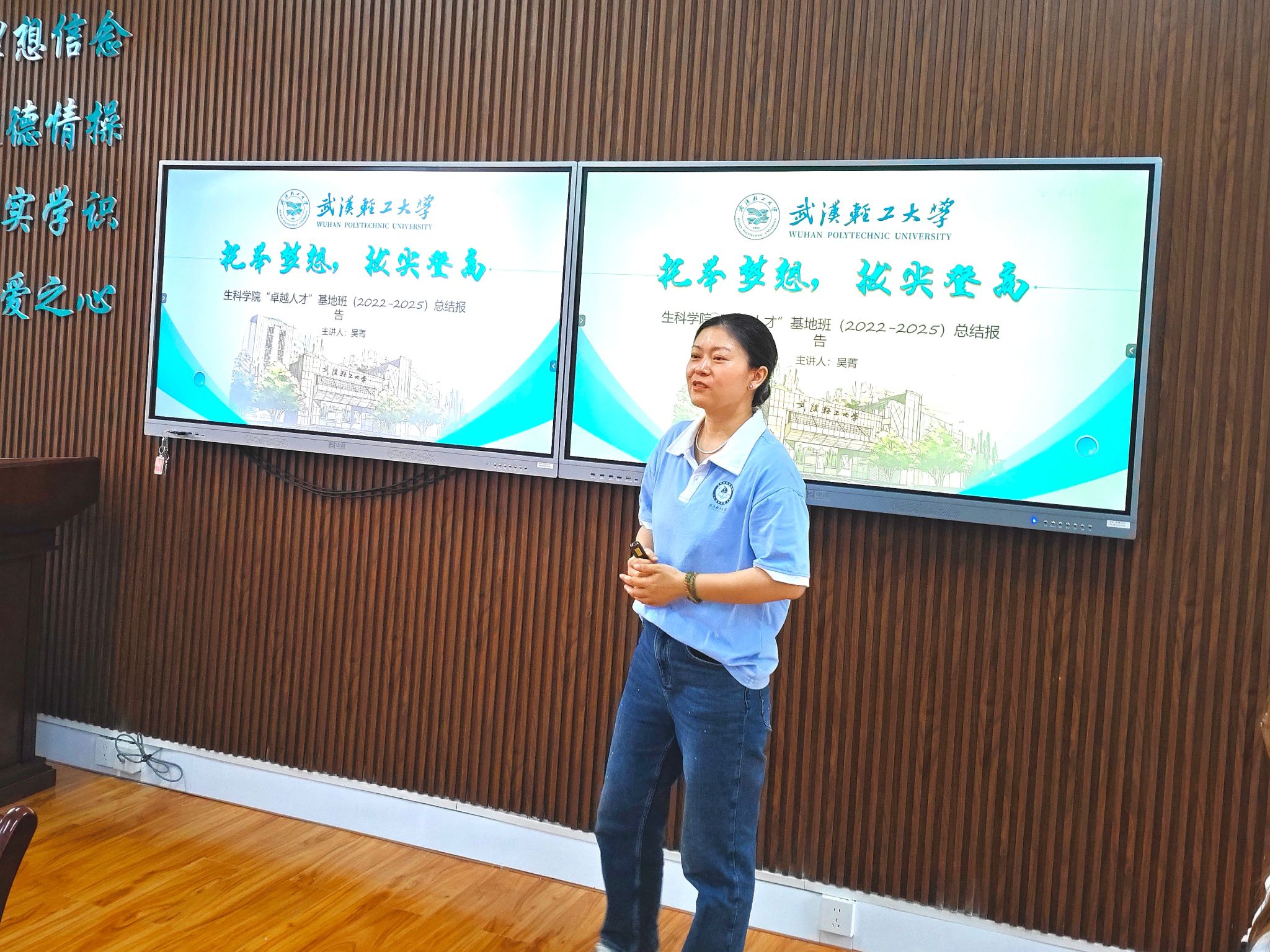 会上,吴菁老师还为大家详细介绍了“卓越人才”基地班自开办以来培养机制的完善历程与所取得的丰硕成果。基地班聚焦生命科学与技术领域前沿,致力于培养未来15-20年内能在行业领先或具有卓越影响力的创新人才。通过保留学生原专业,基地班作为拔尖人才培养的核心孵化平台的系部+基地班双元协同培养模式旨在锻造学员 “一流视野、一流知识、一流能力、一流体格”的品质。往届基地班学员的高GPA、高学科竞赛成果以及报考“双一流”高校等知名院校的高升学率,都充分证明了基地班培养模式的卓著成效,也点燃了第四期基地班学子的学习热情。